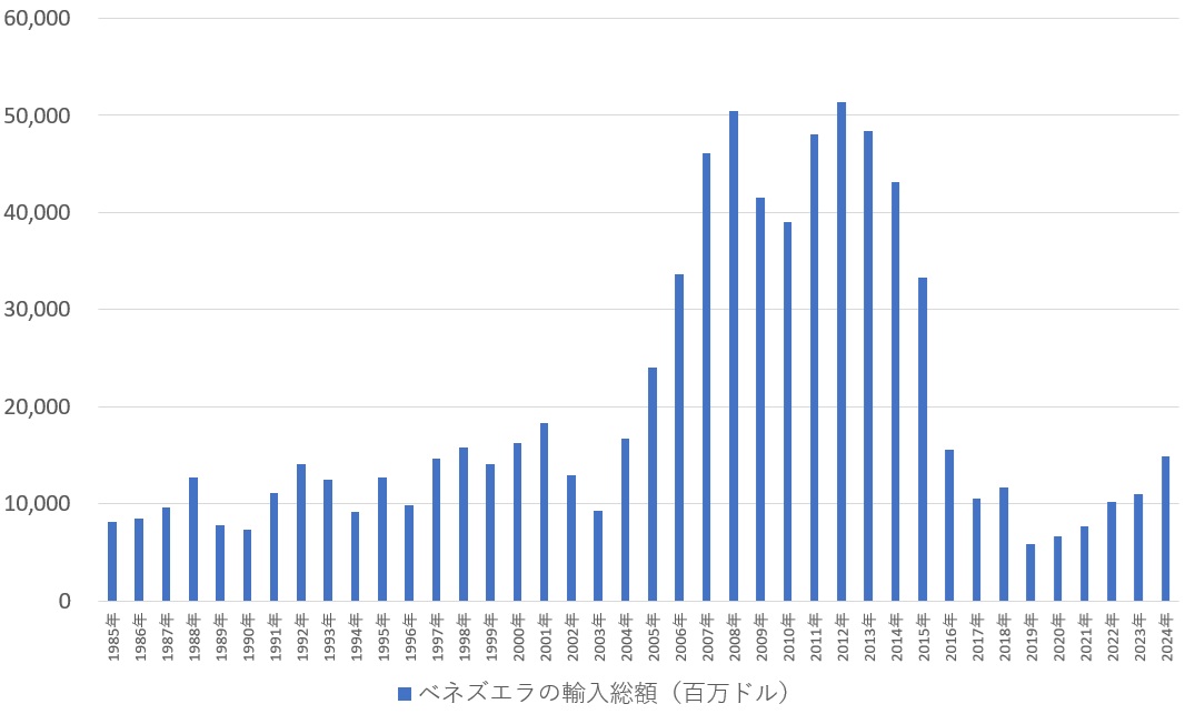 ベネズエラの輸入総額の推移(百万ドル)