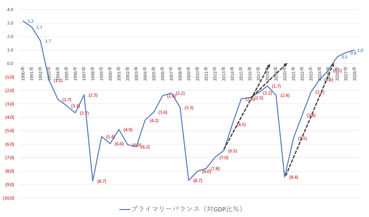 日本の基礎的財政収支(対GDP比%)