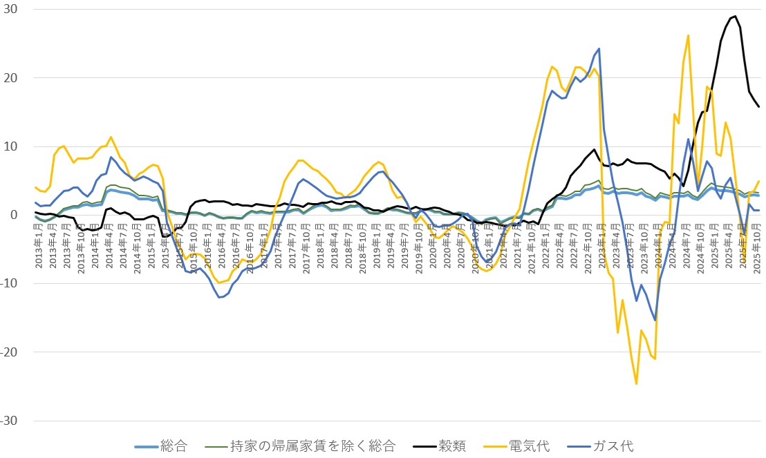 日本の消費者物価指数の推移(対前年比%)