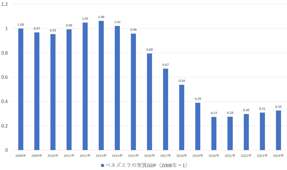 ベネズエラの実質GDPの推移(2008年=1)