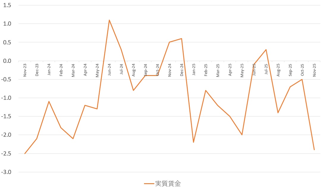 日本の実質賃金指数(対前年比%)