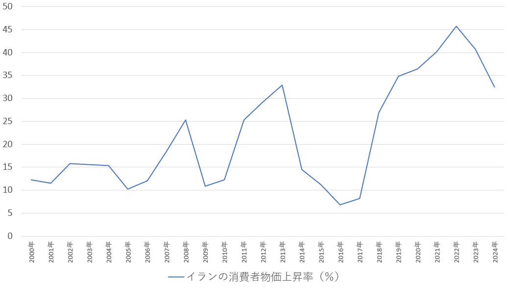 イランの消費者物価上昇率(対前年比%)