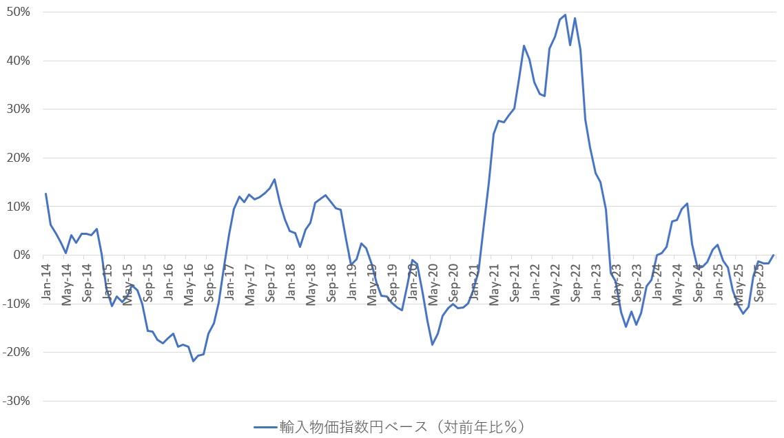 日本の輸入物価指数(円ベース、対前年比%)
