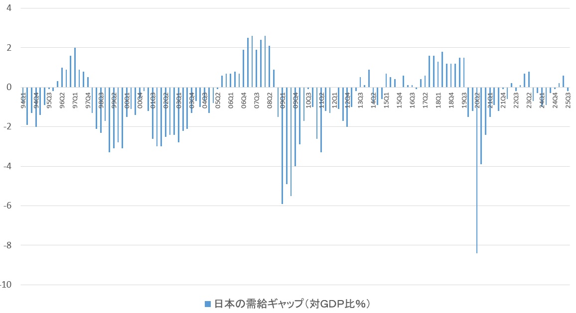 日本の需給ギャップ(対GDP比%)